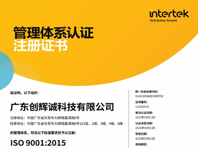廣東創(chuàng)輝誠通過ISO 9001:2015... 2025年3月13日廣東創(chuàng)輝誠科技有限公司順利通過ISO 9001:2015管理體系認證。 創(chuàng)輝誠自2004年成立以來一直致力于從事連接器、線纜... More+