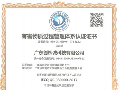 廣東創(chuàng)輝誠通過QC080000-2017... 2025年4月22日廣東創(chuàng)輝誠科技有限公司順利通過QC080000-2017體系認證。 創(chuàng)輝誠自2004年成立以來一直致力于從事連接器、線纜組件... More+